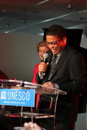 Mené d’une main de maître par Herbie Hancock, Ambassadeur de bonne volonté auprès de l’UNESCO et président du Comité international d’organisation de la Journée internationale du Jazz, et Irina Bokova, Directrice générale de l’UNESCO, l’événement parisien a été marqué par plusieurs manifestations autour du Jazz : expositions photos, conférences débats, master classes, concerts… Tous les ingrédients étaient réunis pour faire reconnaître le Jazz comme un langage universel de la liberté, un outil supplémentaire visant à promouvoir la paix, l’esprit de tolérance et le dialogue interculturel. Fondé sur le respect mutuel et l’acceptation de l’autre, le Jazz a également été la langue de résistance pour de nombreuses sociétés face au totalitarisme (Allemagne, Hongrie, République tchèque, etc.). Force majeure de promotion des droits de l’homme, d’émancipation des femmes et de liberté d’expression, le Jazz incarne ainsi les valeurs fondamentales et les priorités de l’UNESCO.