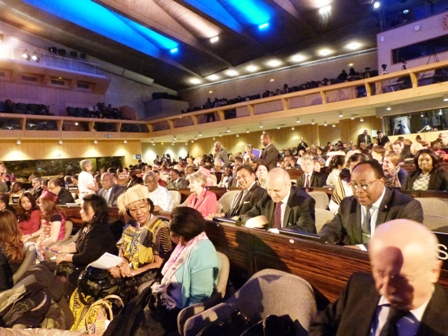 Paris, 26 octobre 2011 : La cérémonie d'ouverture de la 36ème session de la Conférence générale de l'UNESCO s'est tenue le 25 octobre dernier au Siège de l'Organisation, à Paris (France), en présence de Mme Irina Bokova, Directrice générale de l'UNESCO, de M. Davidson Hepburn, président de la 35ème session de la Conférence générale, de Mme Eleonora Mitrofanova, présidente du Conseil exécutif, et de nombreux ministres et chefs de délégations des 193 Etats membres de l'Organisation.