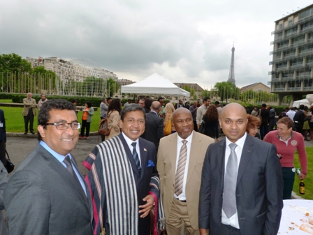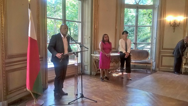 Les deux Chargées d'Affaires a.i de la REPERMAD UNESCO et de l'Ambassade de Madagascar en France ont donné une réception aux diplomates et ambassadeurs pour célébrer la Fête nationale malgache. Cette réception a été organisée à la Résidence de Madagascar à Paris