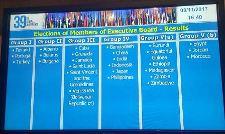 Sur les recommandations du Conseil exécutif, Madagascar a également été élu parmi les 36 Vice-présidents de cette session de la Conférence générale.