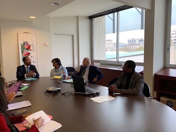 Séances de travail fructueuses entre les membres de la délégation du Ministère de la Jeunesse et des Sports menée par le Ministre, Son Excellence Monsieur Tsihoara Eugène FARATIANA, les responsables de la Division de la Jeunesse et des Sports du secteur des Sciences Humaines et Sociales de l'UNESCO, et le personnel de la Représentation Permanente de Madagascar auprès de l'UNESCO.