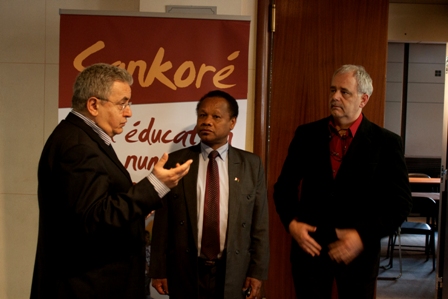Suite à la projection du film documentaire « Makay, les aventuriers du monde perdu » lors de la 2e édition du festival Voyage à travers les films organisé par le Groupe francophone auprès de l'UNESCO, trois responsables de l'association Naturevolution, M. Evrard Wendenbaum - M. Nicolas Gerchenzon - Mme Yvette Ayivi, ont été reçus par M. le Chargé d'affaires a.i dans les bureaux de la REPERMAD UNESCO, le 12 avril 2012.