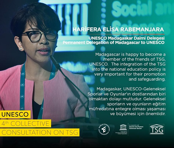 Les pays africains présents à cette réunion ont discuté du cas des JST en Afrique au cours de laquelle il a été fait part de l'existence d'un centre académique des Jeux et Sports et Traditionnels au Cameroun. En tant que membre du Comité intergouvernemental pour l'éducation physique et le sport (CIGEPS) de l'UNESCO, Madagascar, en tant qu'organisateur, a fait part de la tenue de la Conférence d'experts sur la mise en ouvre en Afrique de l'éducation physique de qualité et du Plan d'Action de Kazan en partenariat avec l'UNESCO, l'Union Africaine et le CIEPS qui sera suivie d'une Conférence ministérielle en 2019. Il faut savoir que la question des jeux et sports traditionnels figure dans la note conceptuelle de ces conférences. Madagascar est conscient des bénéfices culturels, économiques et sociaux des jeux et sports traditionnels. C'est pourquoi notre Projet de réformes majeures de la politique nationale du sport (fait par le Ministère de la Jeunesse et des Sports) a intégré la question de la promotion des jeux et sports traditionnels : « article 3 : La diversité de l'éducation physique, de l'activité physique et du sport est un élément essentiel de leur valeur et de leur attrait. Les jeux, danses et sports traditionnels et autochtones, ainsi que leurs formes modernes et nouvelles, sont l'expression de la richesse du patrimoine culturel mondial et doivent être protégés et promus ». Un des moments importants qui a marqué cet évènement est l'officialisation de l'adhésion de Madagascar au Groupe d'amis des JST de l'UNESCO qui compte aujourd'hui 12 Etats membres dont six pays africains. Le fait d'intégrer ce Groupe permettra à notre Pays de bénéficier des bonnes pratiques et de participer aux différents évènements liés aux JST à travers le monde afin de mettre en place une structure pérenne au niveau national pour valoriser nos JST en tant que patrimoine culturel immatériel à sauvegarder et à promouvoir.